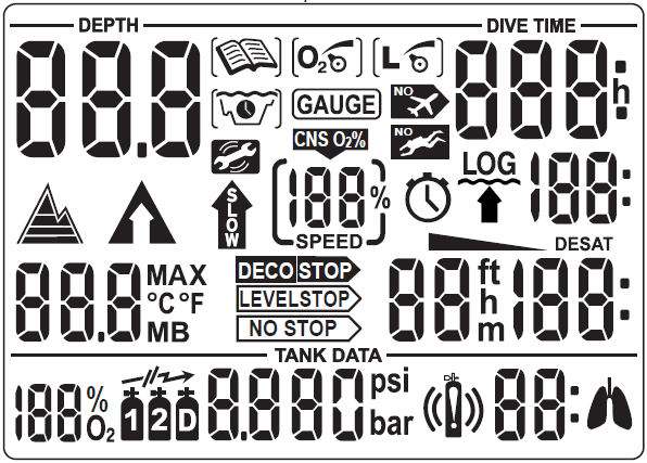 When the percentage displays the percentage that is in your cylinder, press B E to confirm your selection. The Maximum Operating Depth, MOD is displayed. It represents the maximum depth with the percent mix you just confirmed. Press