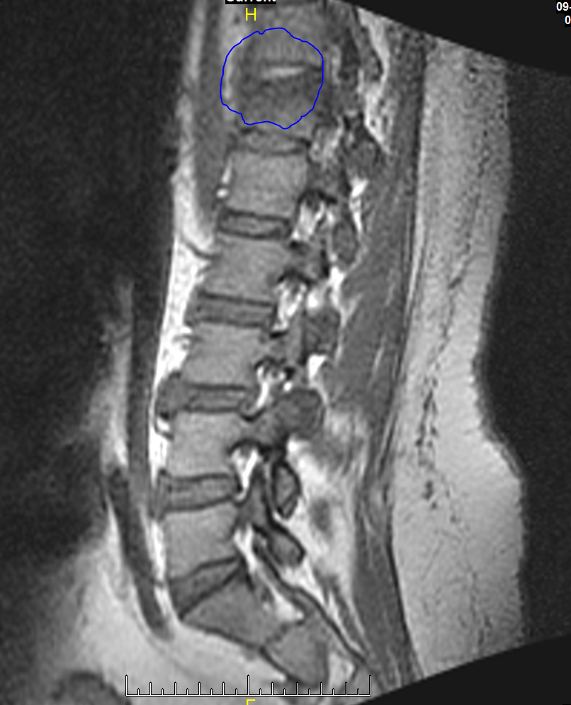 The L1-L2 and L2-L3 intervertebral disks are unremarkable.