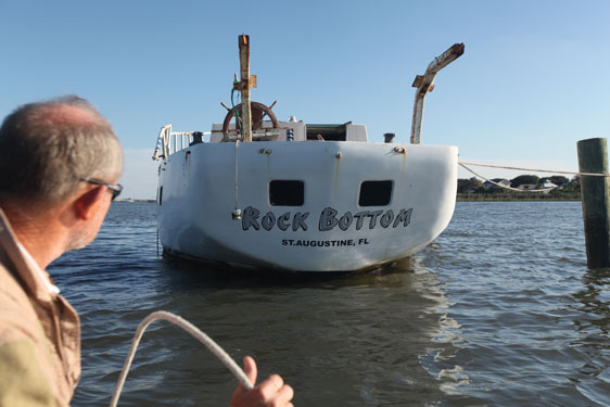 The TISIRI Team once again is out looking at material for it’s candidacy as an artificial reef. We are contacted by Carl Blow,who informs us there is a concrete vessel parked outside his door. It didn’t take long for the team to assemble, head to St. Augustine, Fl. and catch a skif over to this vessel.