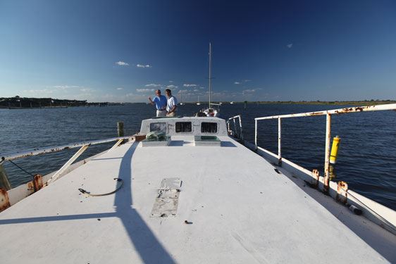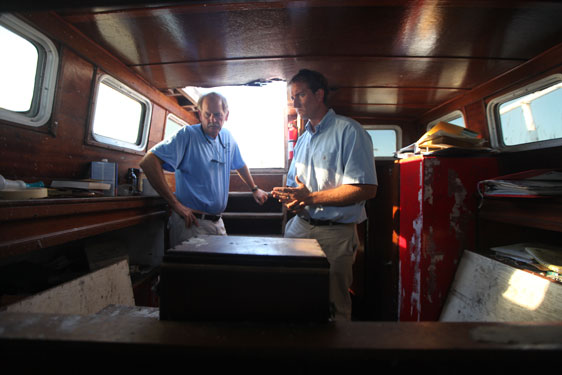 From the bow, I snap this shot of Carl Blow and Joe Kistel discussing the opportunity of this vessel as an artificial reef of the St. Augustine, florida coast line.