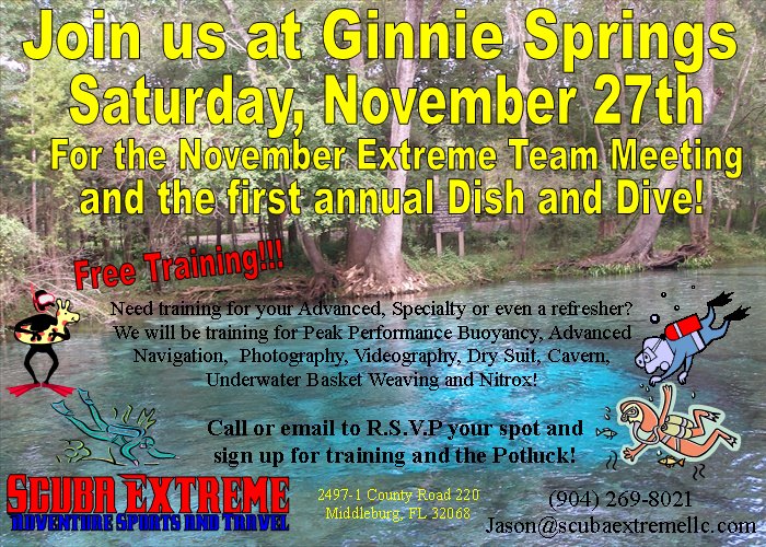 ScubaExtreme is hosting their first annual Dish and Dive. This year it is at Ginnie Springs.