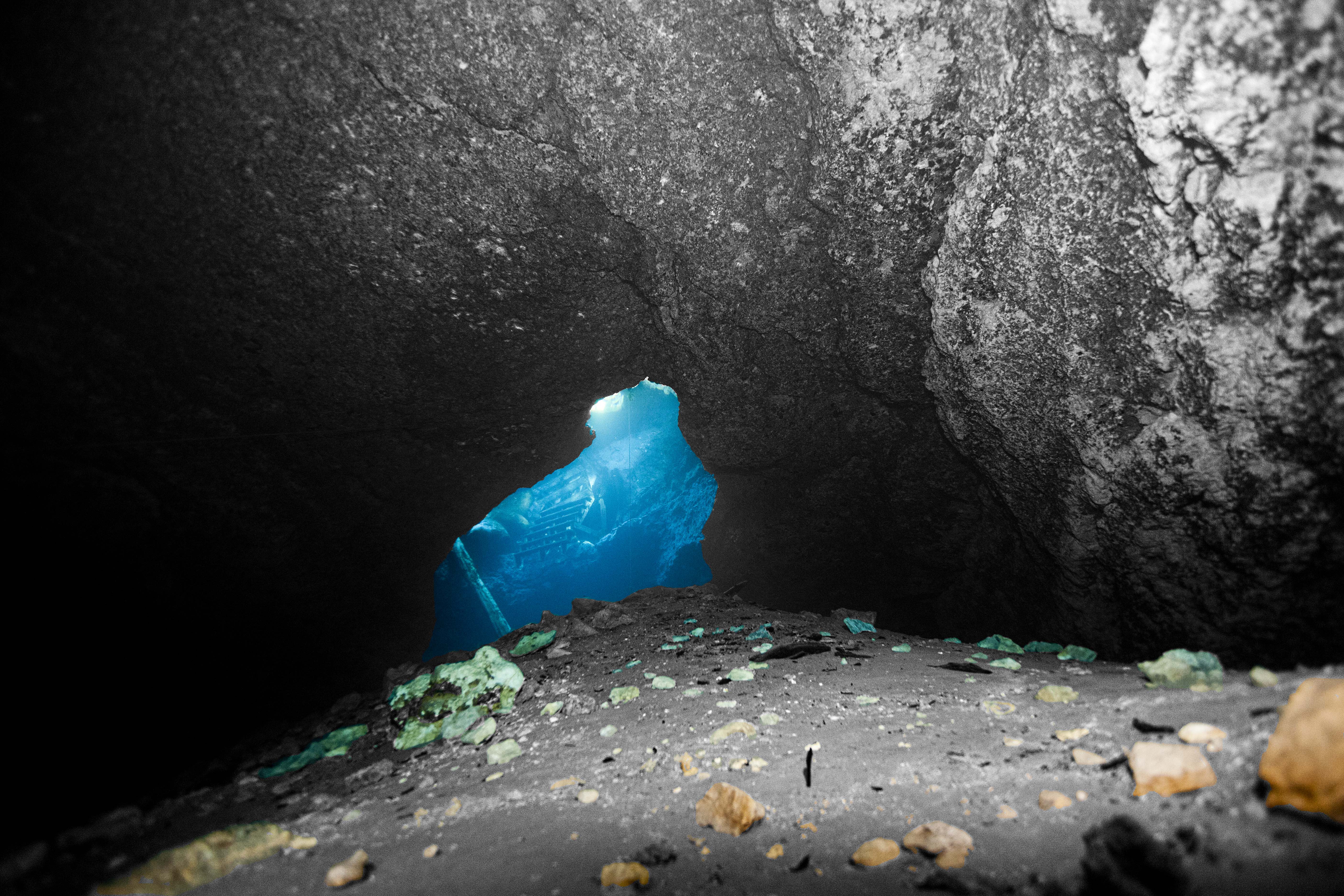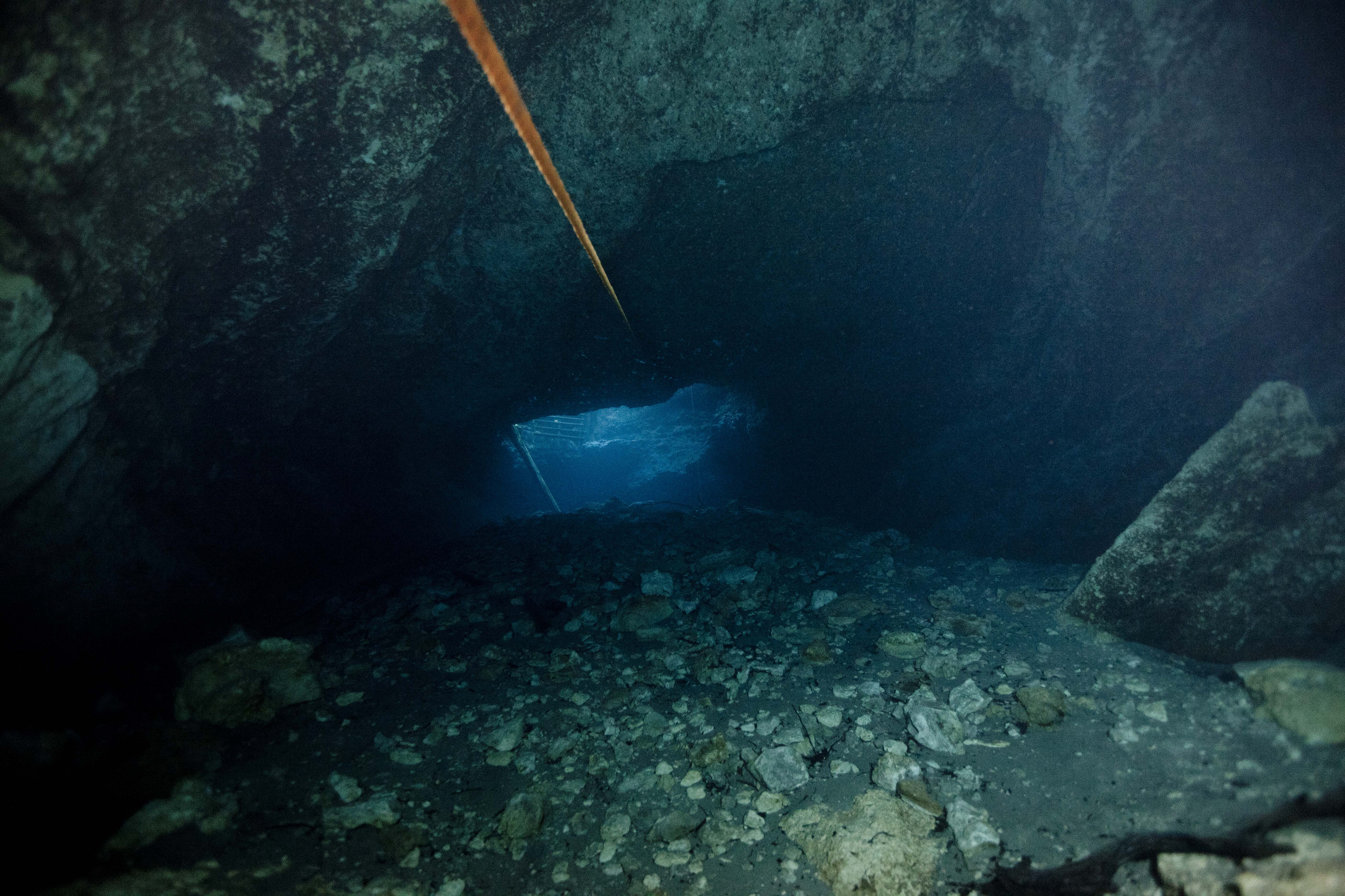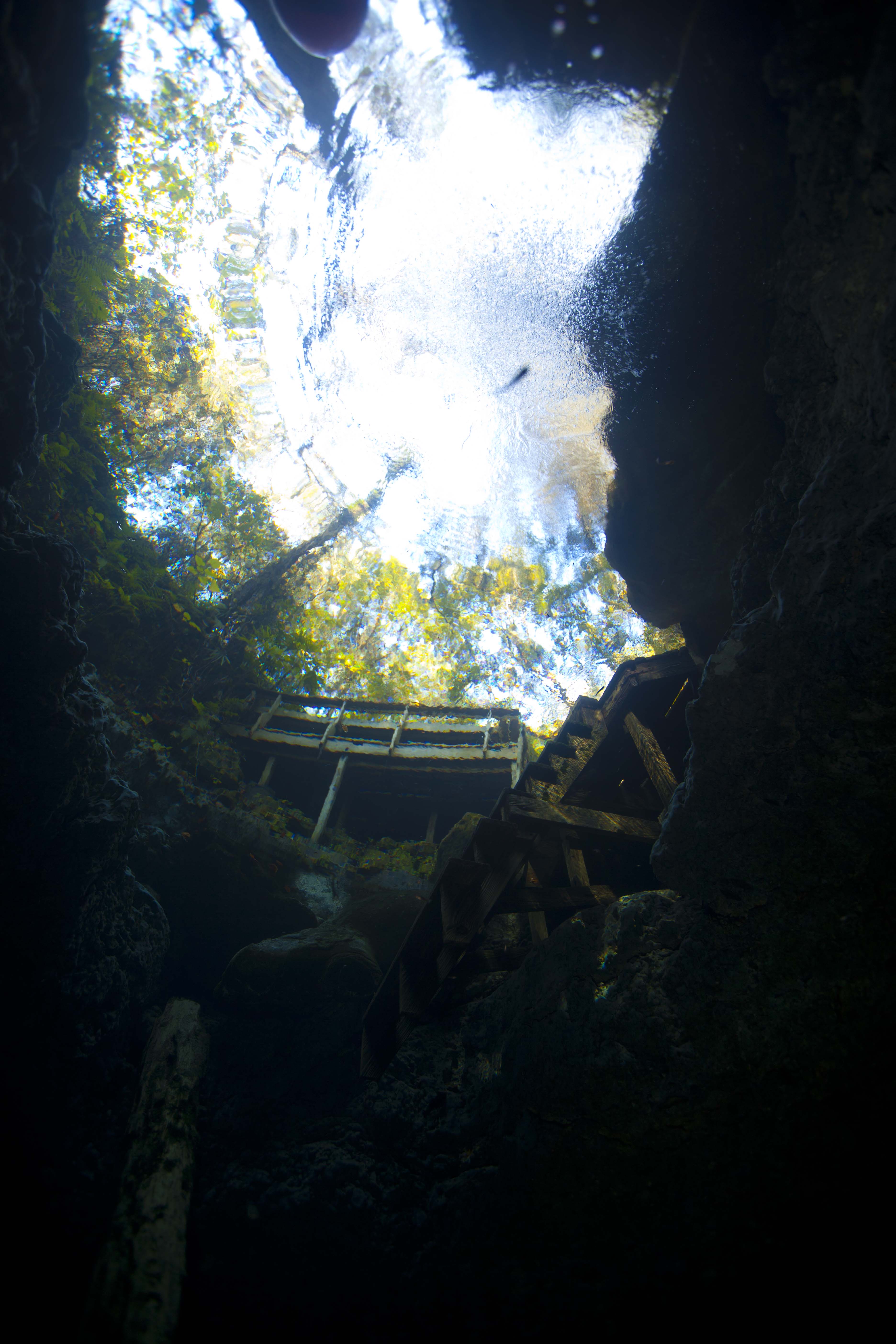 After putting my fins, hood and mask on I grab the camera to begin down the shaft.