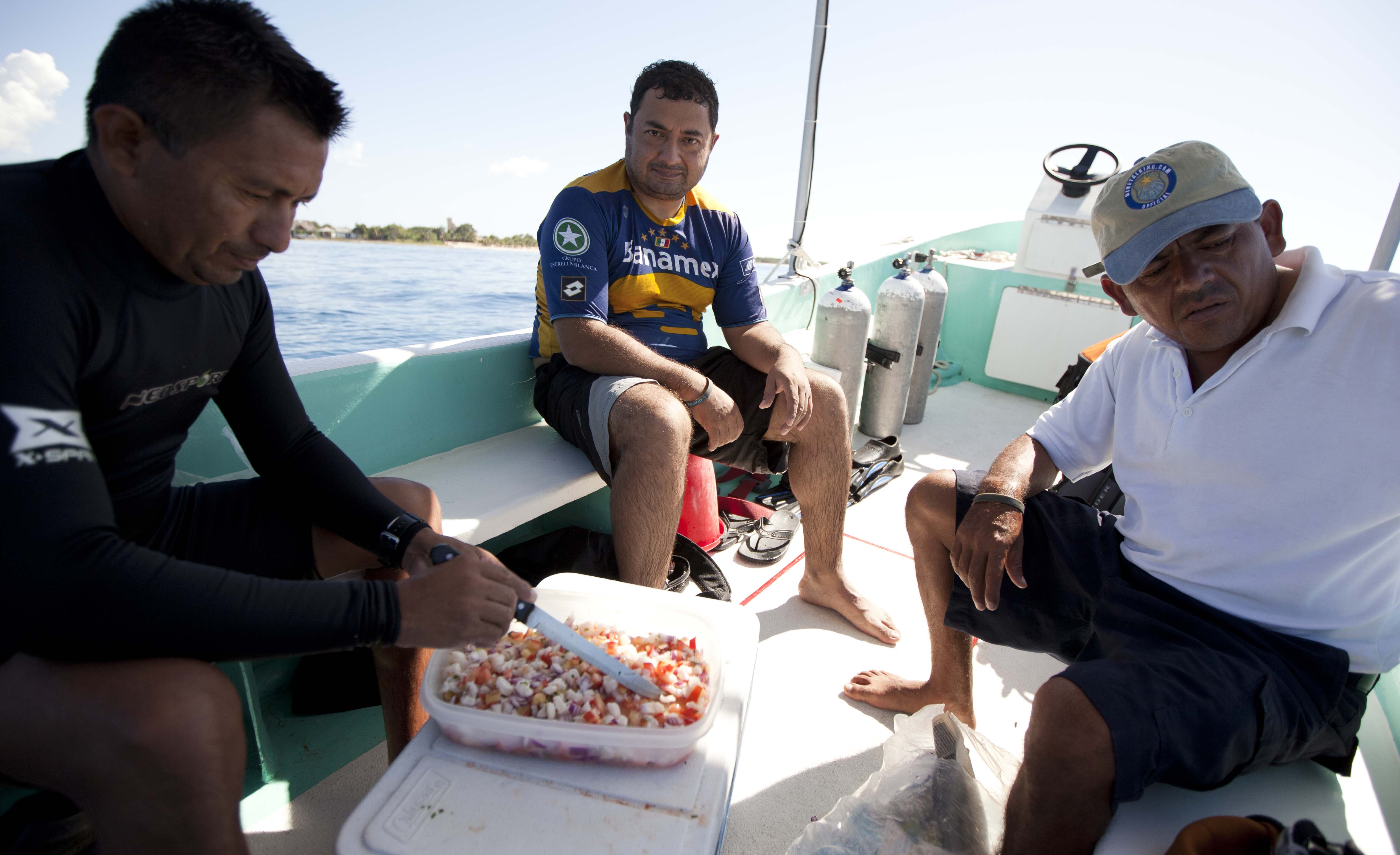 Tuesdays dive, we head to Maracaibo, way down south of the island. Today we hunt for lionfish. At this site, they are big and found deep. We will clean them during the dive and when we reach the boat, we will skin them and make ceveche. Alex has brought all the making for ceveche using fresh ingredients from his garden. Imaging that, dive for your lunch and eat it during the surface interval, lionfish ceveche. what a vacation.