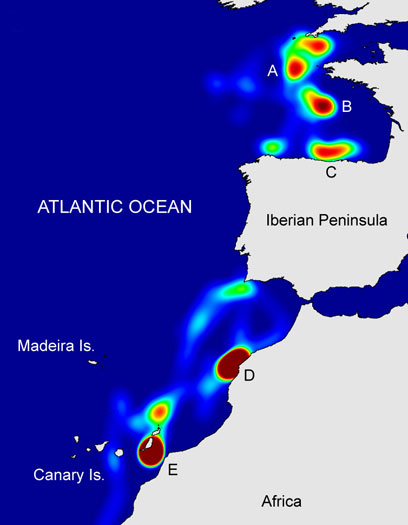 Nuno Queiroz, Nicolas E. Humphries, Leslie R. Noble, António M. Santos, David W. Sims, Spatial Dynamics and Expanded Vertical Niche of Blue Sharks in Oceanographic Fronts Reveal Habitat Targets for Conservation, PLoS One 7(2): e32374, published 29 February 2012, doi:10.1371/journal.pone.0032374