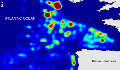 ‘These regions are highly productive parts of the north-east Atlantic. They’re rich in phytoplankton, which forms the base of the food chain. It’s also where you find fish, and ultimately predators like sharks,’ Sims explains.