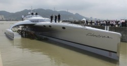The massive vessel’s unique triple hull design — also known as a “trimaran” — was based on world record-breaking boats like the Ady Gil. But while previous tri-hulls were created with speed, fuel efficiency, and weight in mind, the Adastra mixes its braun with beauty. Featuring a luxurious interior, complete with dinning area, fancy sleeping spaces, and even a bathroom and shower, the brand new barge is both easy on the gas and the eyes.